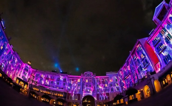 - 夜にはホテルミラコスタの壁面プロジェクションマッピングも